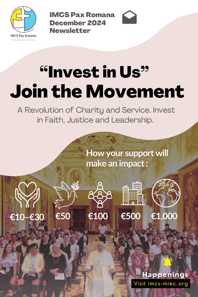 Join the IMCS Pax Romana “Invest in Us” Movement to shape a brighter future for Catholic students worldwide! This is more than a campaign—it’s a call to action to invest in faith, leadership, and justice.